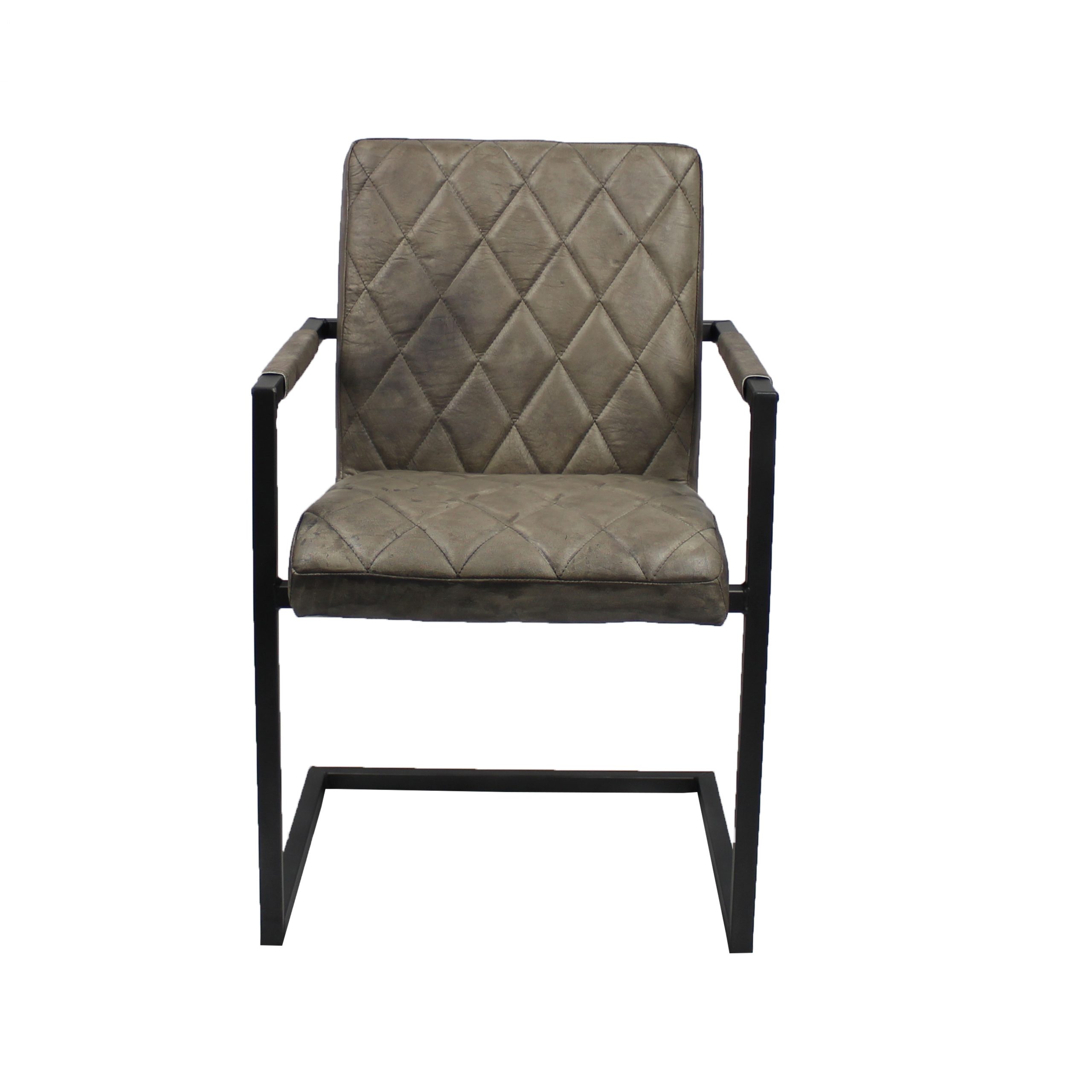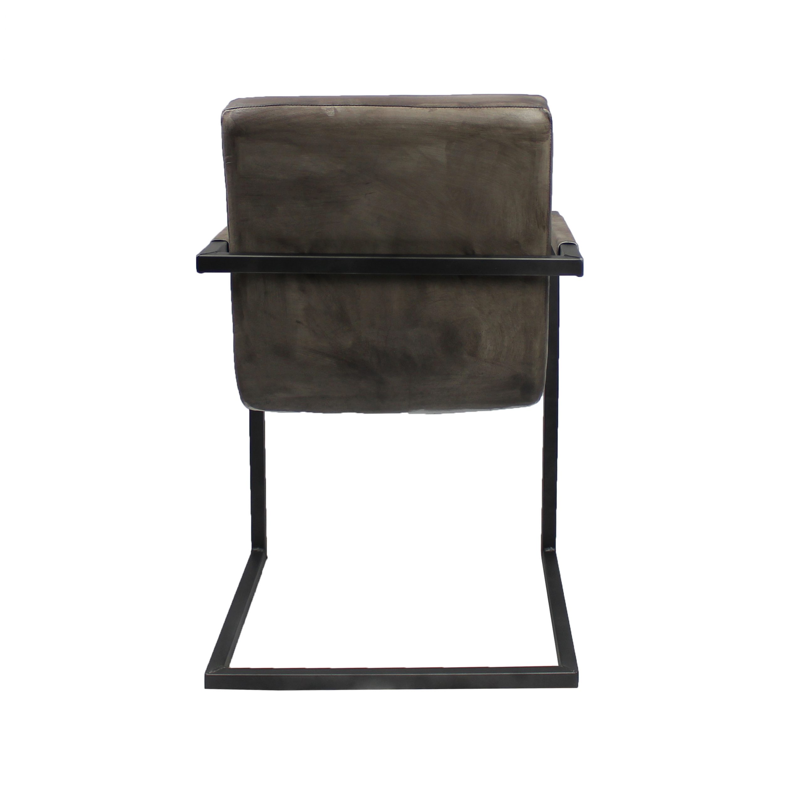 Der elegante Armlehne büffelleder Stuhl im Industriedesign mit manuell gefertigtem Metall-Rahmen. Der Metall-Rahmen wird nach dem Schweißen noch mit einer Schicht Klarlack pulverbeschichtet, um Korrosion und Kratzspuren zu vermeiden. Die Sitzschale wird aus 100% Büffelleder gefertigt. Das Leder wird per Hand gegerbt, gefärbt und vernäht. Armlehne büffelleder Stuhl bietet auf Grund ihrer Konstruktion ein angenehmes Sitzgefühl und hohen Sitzkomfort. Das robuste Stahlgestell und eine qualitativ hochwertige Verarbeitung garantieren eine lange Lebensdauer. Das Produkt wird fertig montiert ausgeliefert. Zusammen mit den Lederbezügen an den Armlehnen bieten die Lentstühle (???) exklusiven Entspannung.