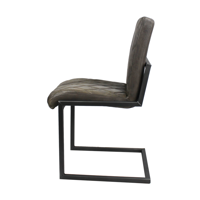 Der elegante Echtes Büffelleder Grau Capo ohne Armlehne im Industriedesign mit manuell gefertigtem Metall-Rahmen. Der Metall-Rahmen wird nach dem Schweißen noch mit einer Schicht Klarlack pulverbeschichtet, um Korrosion und Kratzspuren zu vermeiden. Die Sitzschale wird aus 100% Büffelleder gefertigt. Das Leder wird per Hand gegerbt, gefärbt und vernäht. Freischwinger-Stühle bieten auf Grund ihrer Konstruktion ein angenehmes Sitzgefühl und hohen Sitzkomfort. Das robuste Stahlgestell und eine qualitativ hochwertige Verarbeitung garantieren eine lange Lebensdauer. Das Produkt wird fertig montiert ausgeliefert. Zusammen mit den Lederüberzügen an den Armlehnen bieten die Lentstühle (???) exklusiven Entspannung.