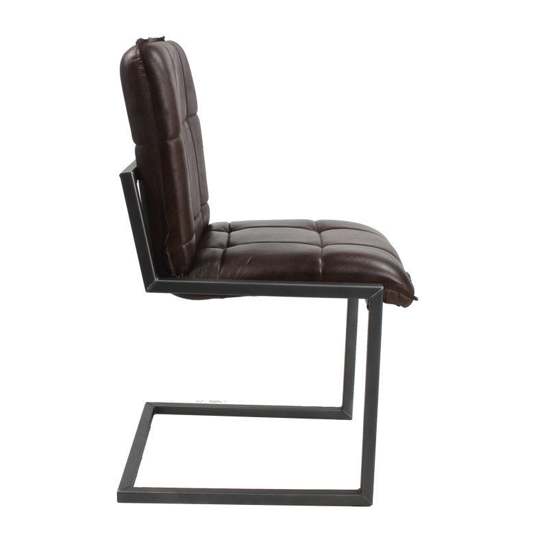 Der elegante Freischwinger Echtleder mit Armlehne im Industriedesign mit manuell gefertigtem Metall-Rahmen. Der Metall-Rahmen wird nach dem Schweißen noch mit einer Schicht Klarlack pulverbeschichtet, um Korrosion und Kratzspuren zu vermeiden. Die Sitzschale wird aus 100% Büffelleder gefertigt. Das Leder wird per Hand gegerbt, gefärbt und vernäht. Freischwinger-Stühle bieten auf Grund ihrer Konstruktion ein angenehmes Sitzgefühl und hohen Sitzkomfort. Das robuste Stahlgestell und eine qualitativ hochwertige Verarbeitung garantieren eine lange Lebensdauer. Das Produkt wird fertig montiert ausgeliefert. Zusammen mit den Lederüberzügen an den Armlehnen bieten die Lentstühle (???) exklusiven Entspannung.