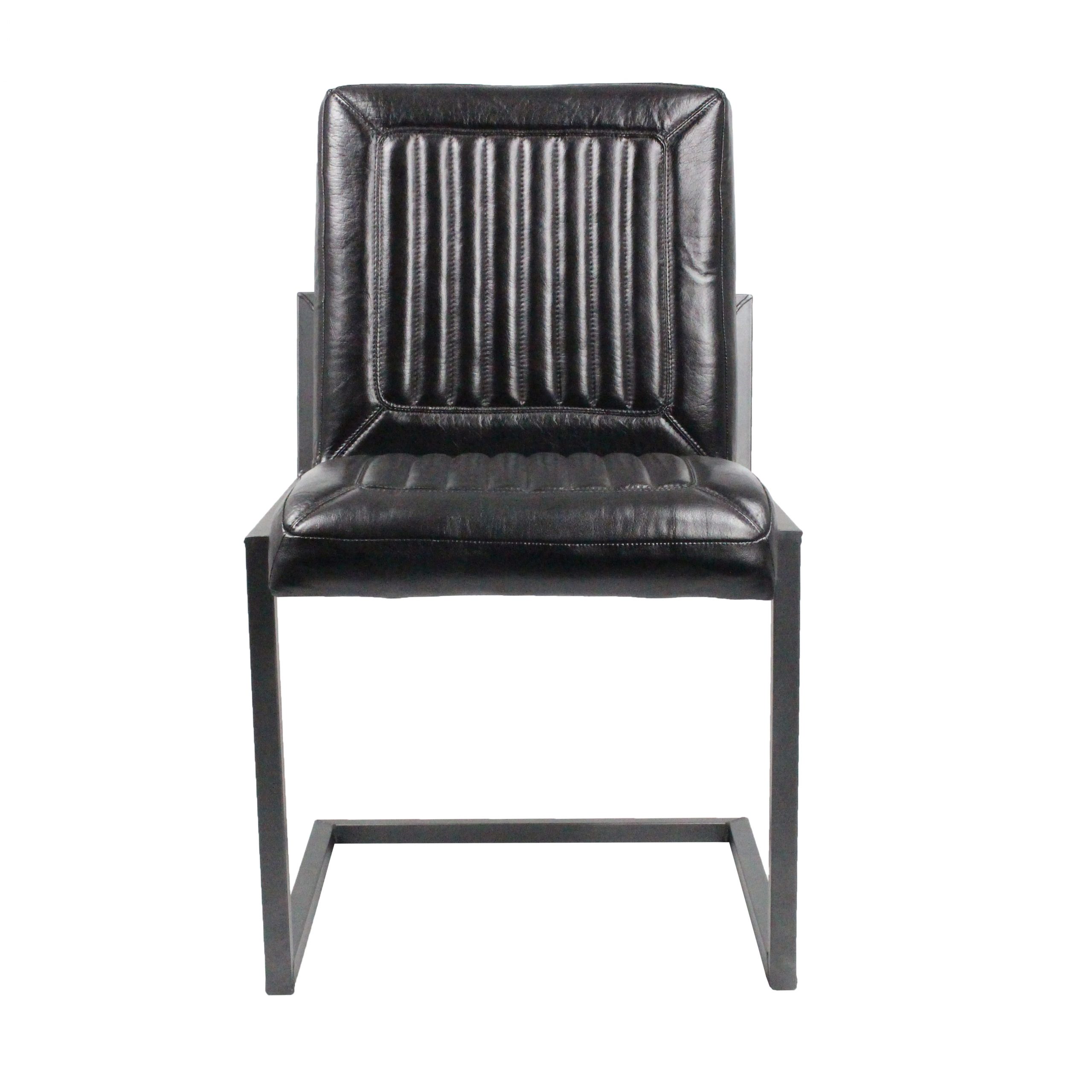 Der elegante Handarbeit Leder Stuhl ohne Armlehne im Industriedesign mit manuell gefertigtem Metall-Rahmen. Der Metall-Rahmen wird nach dem Schweißen noch mit einer Schicht Klarlack pulverbeschichtet, um Korrosion und Kratzspuren zu vermeiden. Die Sitzschale wird aus 100% Büffelleder gefertigt. Das Leder wird per Hand gegerbt, gefärbt und vernäht. Freischwinger-Stühle bieten auf Grund ihrer Konstruktion ein angenehmes Sitzgefühl und hohen Sitzkomfort. Das robuste Stahlgestell und eine qualitativ hochwertige Verarbeitung garantieren eine lange Lebensdauer. Das Produkt wird fertig montiert ausgeliefert. Zusammen mit den Lederüberzügen an den Armlehnen bieten die Lentstühle (???) exklusiven Entspannung.